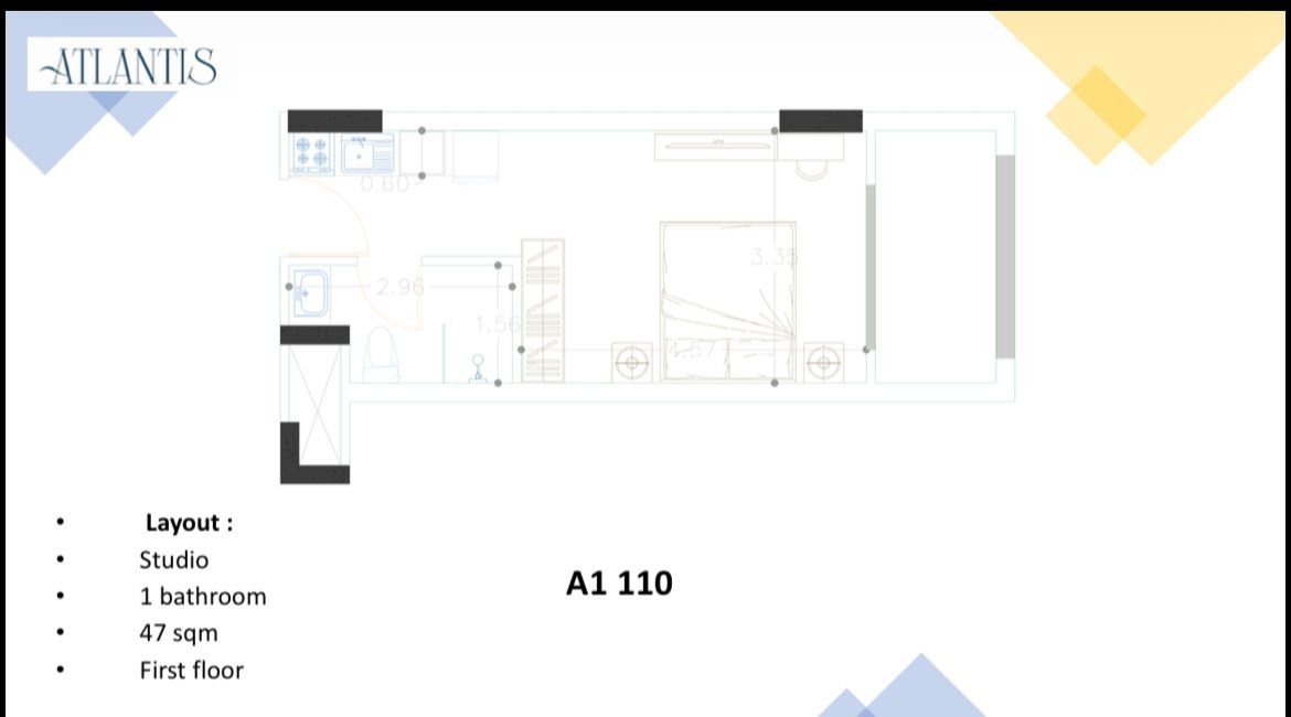 Located on the 2nd floor, the apartment features a bright living area, a private bedroom, a modern bathroom, and space for a fully equipped kitchen. The larger 91 sqm layout provides extra comfort and functionality, increasing both lifestyle value and rental appeal.